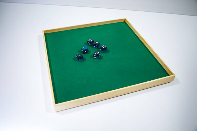 Geräuscharmes Würfelbrett, zusätzlich zum Filz hat es noch eine Kork Unterlage, welche die Geräusche der fallenden Würfel auffängt und dämpft!